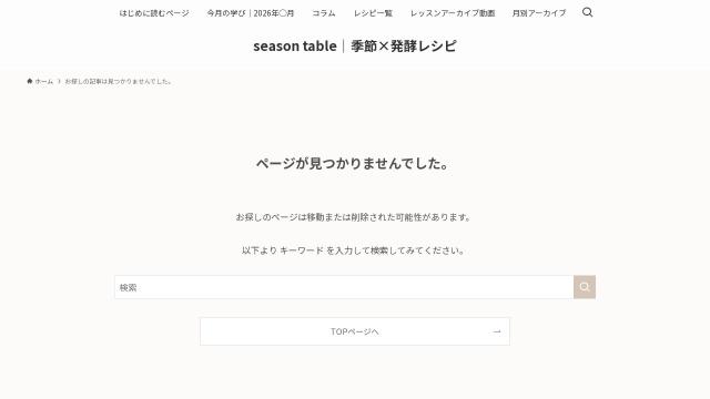 | タイトル | ページが見つかりませんでした – season table|季節×発酵レシピ |