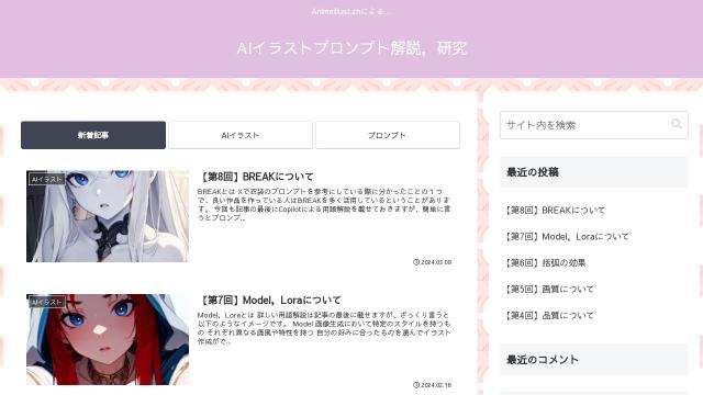 | タイトル | AIイラストプロンプト解説,研究 | Anlmeillust.chによる… |