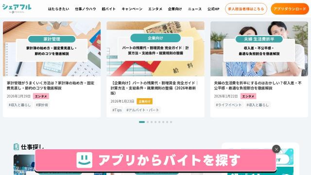 | タイトル | シェアフルマガジン|スキマバイト・単発バイト・短期バイト情報が充実!超レアなスキマバイトや体験談も満載! | |