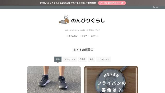 | タイトル | のんびりぐらし | ゆるミニマリストママの暮らしと子育てのブログ |