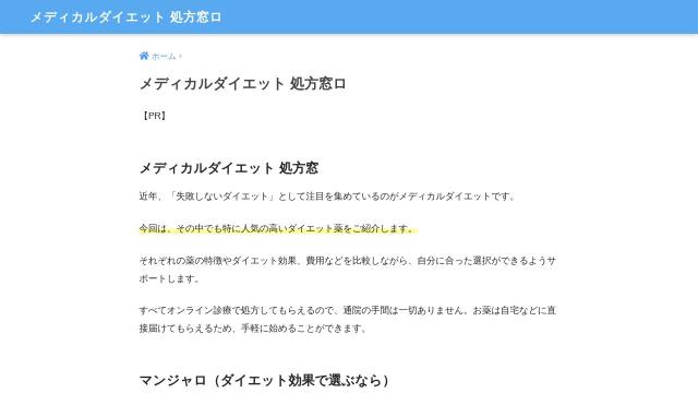 | タイトル | メディカルダイエット 処方窓ロ | メディカルダイエット 処方窓ロでは、肥満薬として実績のあるGLP-1を使った我慢をしないダイエットを紹介します。 |