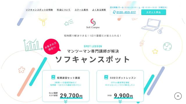 | タイトル | 短期・速習・1日講座はソフキャンスポット|完全マンツーマンのソフトキャンパス |