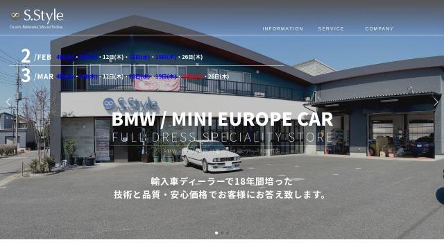 | タイトル | BMW・MINI・欧州車のドレスアップ専門店 S.Style|エススタイル - BMW・MINI・欧州車のドレスアップやパーツのことなら、栃木県宇都宮市のs.style(エススタイル)へお任せください。 |