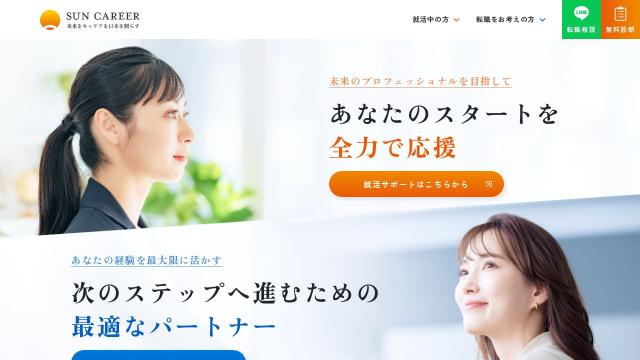 | タイトル | 【SUN CARRER(サンキャリア)】厳選求人の紹介・面接対策まであなたの就活・転職を徹底サポート! |
