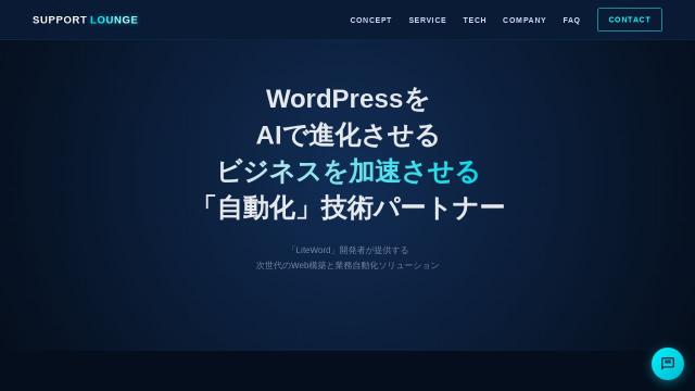 | タイトル | SUPPORT LOUNGE | WordPressをAIで進化させる。ビジネスを加速させる「自動化」技術パートナー |