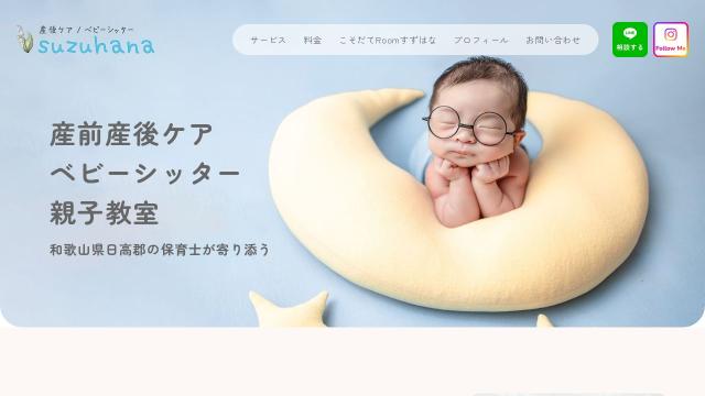 | タイトル | suzuhana | 和歌山・日高郡エリア対応/産前産後ケア・訪問ベビーシッター・親子教室。保育士歴20年のプロが、ママと赤ちゃんの安心時間をサポート。 |