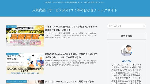 | タイトル | 人気商品(サービス)の口コミ等のおかせチェックサイト | 人気商品(サービス)の口コミ等を徹底調査しました。購入前に是非ご覧ください。 |
