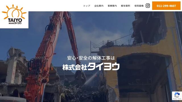 | タイトル | 株式会社タイヨウ - 北海道札幌市の解体業者です。木造・鉄骨・コンクリート様々な建物を安心安全に解体します! |