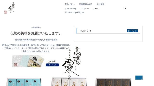 | タイトル | 高橋優製麺所 – 明治創業の手延そうめん屋。極細そうめんや曲麺など様々な珍しいそうめんを製造・販売しています。 |
