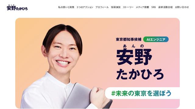 | タイトル | 安野たかひろ(東京都知事候補)公式ホームページ |