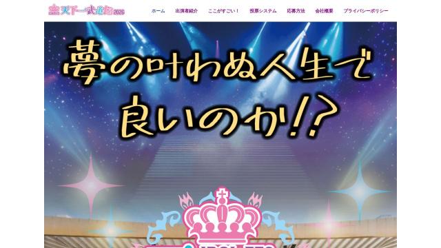 tenkaichi-budokan.com 2026-02-25 お気に入り0タイトルアイドルフェス 天下一武道館 - 公式サイトトップページhttps://tenkaichi-budokan.com/言語日本語 (ja)国国情報がありませんCMSWordPressWordPressサーバーエックスサーバーエックスサーバーテーマAstraAstraプラグインAll in One SEO – Powerful SEO Plugin to Boost SEO Rankings & Increase TrafficBroken Link Checker by AIOSEO – Easily Fix/Monitor Internal and External linksComplianz – GDPR/CCPA Cookie ConsentComplianz – Terms and Conditionselementor-ai.Elementor ProElementor Website Builder – More Than Just a Page BuilderElementorhfe.MonsterInsights – Google Analytics Dashboard for WordPress (Website Stats Made Easy)nps-survey.Popup Builder & Popup Maker for WordPress – OptinMonster Email Marketing and Lead Generationreallysimplessl.TablePress – Tables in WordPress made easyUltimate Addons for Elementorサイトタイプコーポレートサイト色白色表示速度3,501 msec ココナラでカスタマイズを探すWP-Searchは、Webサイトの公開情報から解析しています。100%正確な情報とは限りません。一部のプラグインは検出できず、検出精度の悪いプラグインもあります。負荷軽減のため一定期間キャッシュされています。