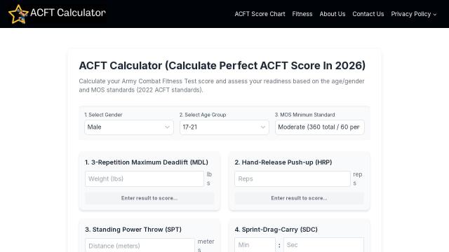 | Title | ACFT Calculator: Army Fitness Test Score & Pass 2026 |