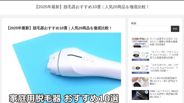 | タイトル | 【2025年最新】脱毛器おすすめ10選|人気20商品を徹底比較! | 2025年最新!おすすめの脱毛器10選をランキング形式で紹介!人気の家庭用脱毛器20商品を7つの項目を元に比較して解説しています。どの脱毛器を購入しようか迷っている方の参考になれば幸いです。 |