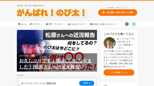 | タイトル | 海外就職・海外留学に関する情報を“実体験”を元に語るブログ - がんばれ!のび太! |