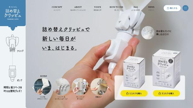 | タイトル | 詰め替えクリッピュ l 新・まいにち l 時短と省スペースを叶える便利グッズ。 | シャンプーやコンディショナー、食器用洗剤などの詰め替えパックに挿し込むだけ!『詰替クリッピュ』が、名もなき家事からの解放をサポートし、時短&省スペースを実現します!! |