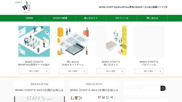 | タイトル | HOME-WIING STAFF'SはWordPress専用の社内ポータル向け軽量テーマです |
