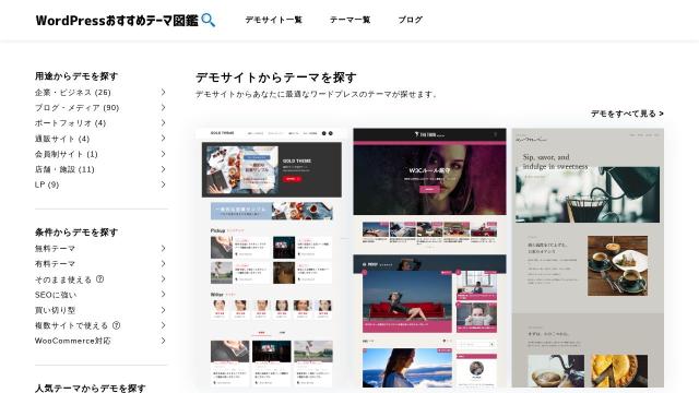 | タイトル | WordPressおすすめテーマ図鑑 | デモサイトからテーマを検索 |