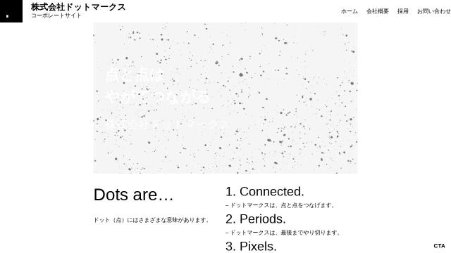 www.dotmarks.co.jp 2026-01-16 お気に入り0タイトル株式会社ドットマークス | コーポレートサイトトップページhttps://www.dotmarks.co.jp/言語日本語 (ja)国国情報がありませんTLD.co.jpCMSWordPressWordPressサーバーエックスサーバーエックスサーバーテーマairectairectプラグインサイトタイプコーポレートサイト色白色表示速度1,083 msec ココナラでカスタマイズを探すWP-Searchは、Webサイトの公開情報から解析しています。100%正確な情報とは限りません。一部のプラグインは検出できず、検出精度の悪いプラグインもあります。負荷軽減のため一定期間キャッシュされています。