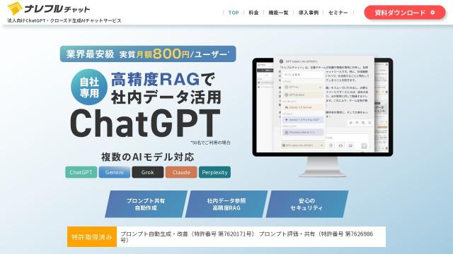 | タイトル | 法人向け生成AIチャットのナレフルチャット |