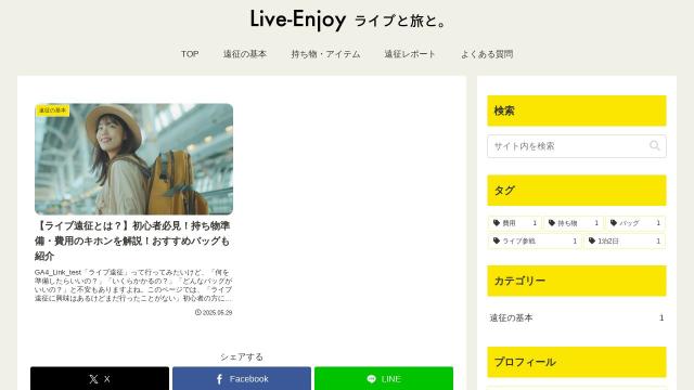 | タイトル | Live-Enjoy ライブと旅と。 | ライブに行く、ってだけで毎日がちょっと楽しくなる。 |