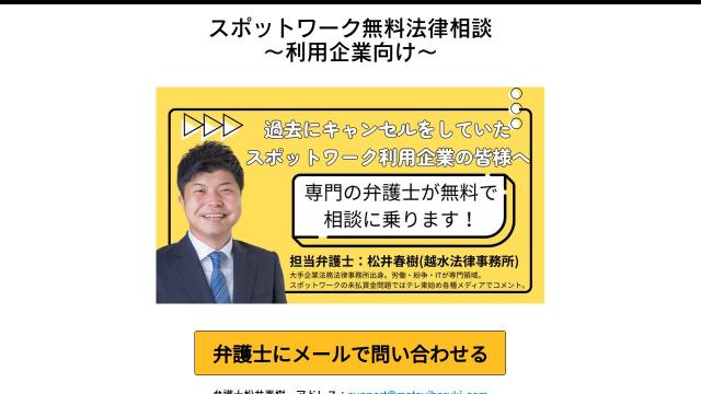 www.matsuiharuki.com 2025-12-03 お気に入り0タイトルスポットワーク無料法律相談〜利用企業向け〜トップページhttps://www.matsuiharuki.com/言語日本語 (ja)国国情報がありませんTLD.comCMSWixWix色黄色表示速度5,564 msec ココナラでカスタマイズを探すWP-Searchは、Webサイトの公開情報から解析しています。100%正確な情報とは限りません。一部のプラグインは検出できず、検出精度の悪いプラグインもあります。負荷軽減のため一定期間キャッシュされています。