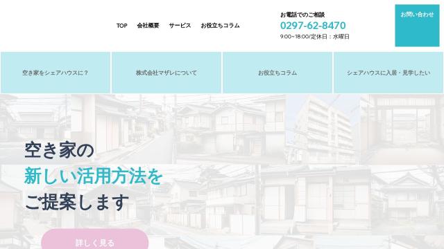 www.mazare.jp 2025-10-06 お気に入り0タイトルTOP | 株式会社マザレ|空き家の新しい活用法ならトップページhttps://www.mazare.jp/言語日本語 (ja)国国情報がありませんTLD.jpCMSWixWixサイトタイプコーポレートサイト色白色表示速度4,121 msec ココナラでカスタマイズを探すWP-Searchは、Webサイトの公開情報から解析しています。100%正確な情報とは限りません。一部のプラグインは検出できず、検出精度の悪いプラグインもあります。負荷軽減のため一定期間キャッシュされています。