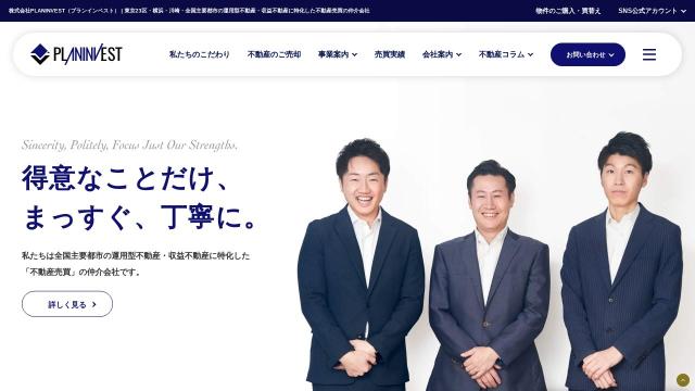 | タイトル | 株式会社PLANINVEST(プランインベスト) | 東京23区・横浜・川崎・全国主要都市の運用型不動産・収益不動産に特化した不動産売買の仲介会社 |
