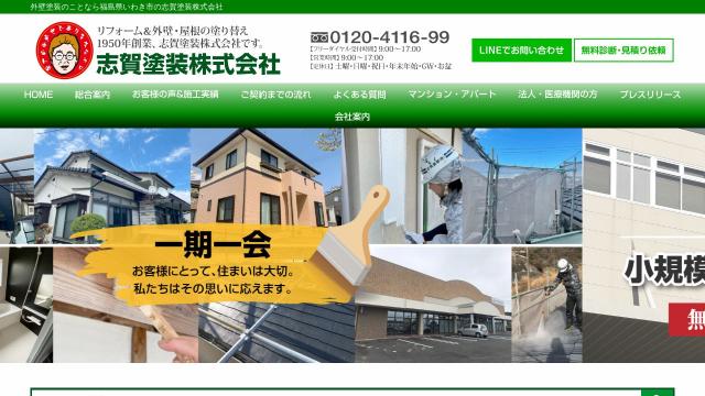 | タイトル | 外壁塗装のことなら福島県いわき市の志賀塗装株式会社 | 私たちの誇りは福島県いわき市で60年以上ていねいに外壁と屋根の仕事を続けてきたことです |
