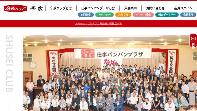 | タイトル | 守成クラブ帯広 | 守成クラブ帯広は商売繁盛・のビジネスチャンス拡大を目的とした経営者によって構成される会員制のクラブです。商談・販路・人脈を求める積極的な経営者が集い、商談交流会を通じて新たなビジネスチャンスを広げています。 |