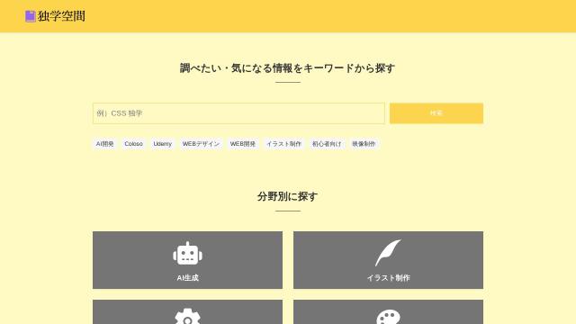 | タイトル | 独学空間 | 社会人からスキルアップを目指せる独学者向け学習情報メディア |