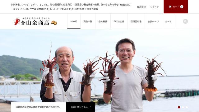 | タイトル | 海産問屋 山金商店 | 伊勢海老通販 | 伊勢海老、アワビ、サザエ、とこぶし、岩牡蠣通販の山金商店 – [三重県伊勢志摩産の魚貝、海の幸お取り寄せ] 鮑(あわび) トコブシ とこぶし サザエ 岩牡蠣(カキ) しったか 干物 高足蟹(かに) 鮮魚 魚介類 販売通販 |