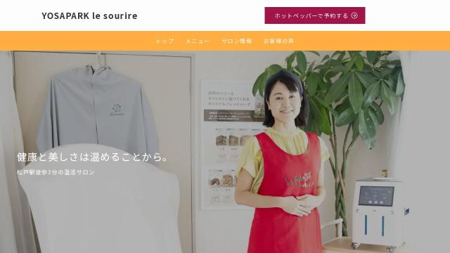 | タイトル | YOSAPARK le sourire | 松戸西口駅近くのよもぎ蒸し、水素吸入で美しさを提供 |