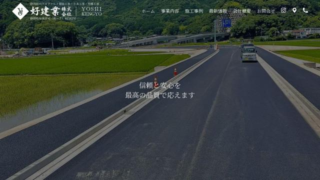 | タイトル | 好建業株式会社 | 好建業株式会社|静岡県のアスファルト舗装工事・土木工事・外構工事のお問合せ、お見積もりお待ちしております。 |