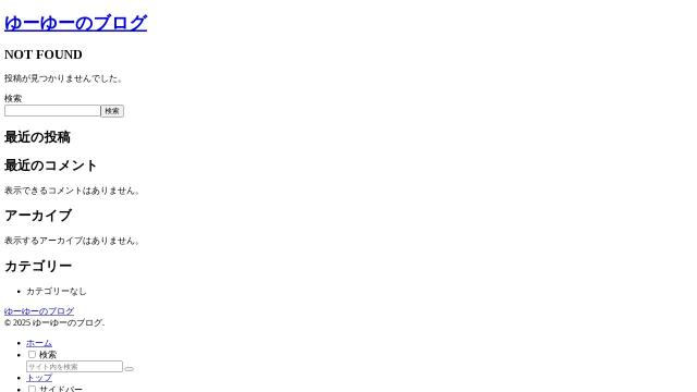 yu-yu0202.com/blog 2025-11-26 お気に入り0タイトルゆーゆーのブログトップページhttps://yu-yu0202.com/blog/言語日本語 (ja)国国情報がありませんCMSWordPressWordPressサーバーCloudflare (Cloudflare, Inc.)CloudflareテーマCocoonCocoonプラグインLiteSpeed CacheLiteSpeed Cacheサイトタイプブログ色白色表示速度2,901 msec ココナラでカスタマイズを探すWP-Searchは、Webサイトの公開情報から解析しています。100%正確な情報とは限りません。一部のプラグインは検出できず、検出精度の悪いプラグインもあります。負荷軽減のため一定期間キャッシュされています。
